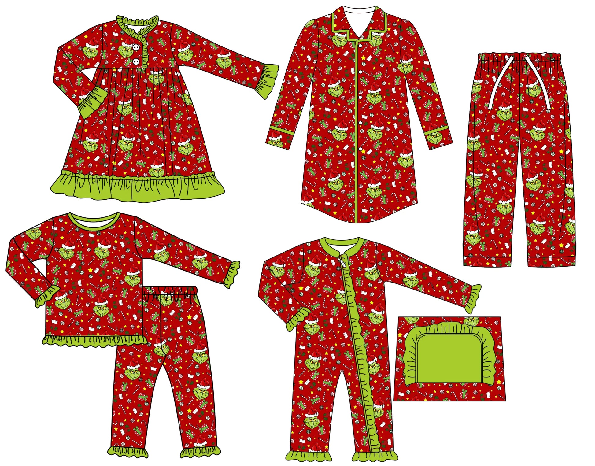 Girl’s Red Grinch Ruffle Pajama Set